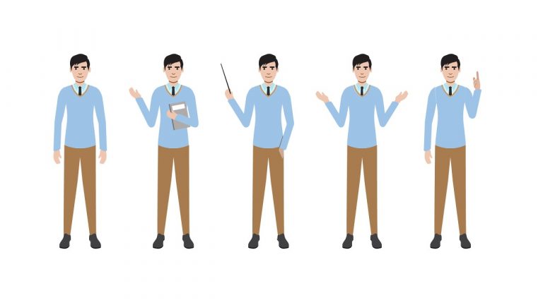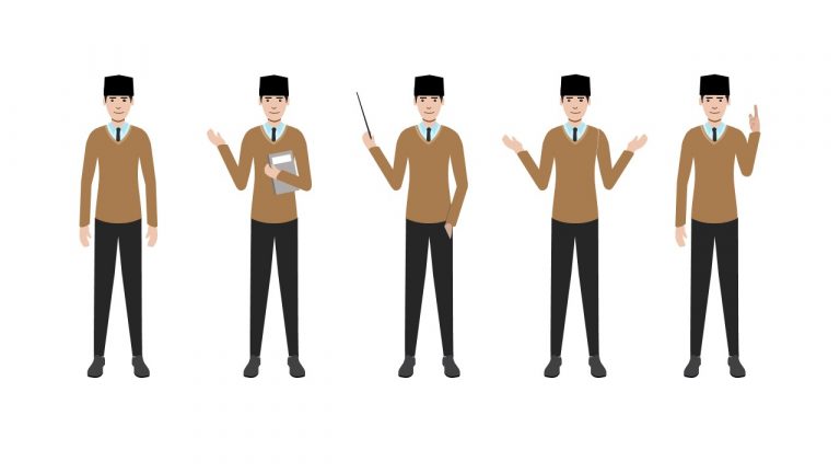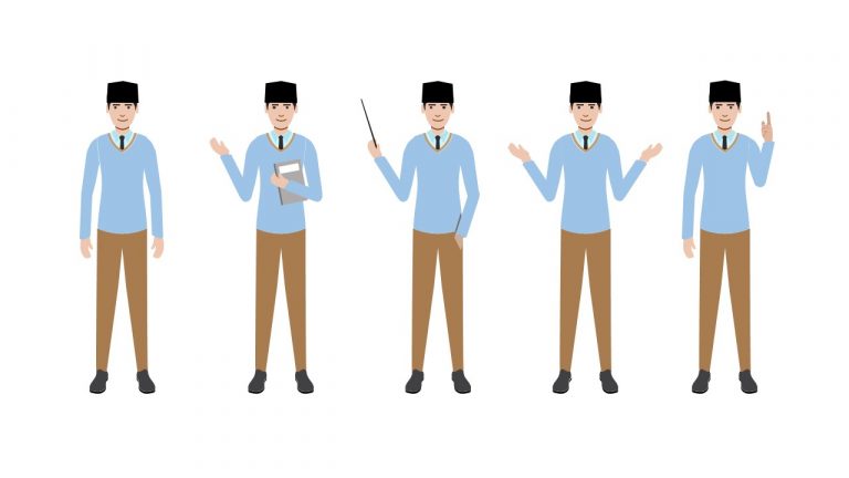 Dilengkapi dengan aneka Pose Characters set Siswa & Pendidik, yang bisa Anda edit warna Seragamnya.